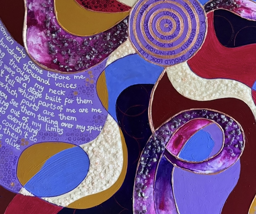 Ogni mio dipinto nasce dall'emozione suscitata da versi poetici che mi suggestionano e nei quali ritrovo frammenti della mia storia. Unire parole, forme e colori per me significa intrecciare due linguaggi che amo: la pittura e la poesia. La stessa parola "poesia" ne svela il legame profondo: deriva dal greco poiesis, che significa "produrre", "creare". La parola evocativa della poesia prende forma, così, attraverso la creazione artistica, dando voce a tutto ciò che umanamente ci accomuna: il percorso esistenziale di ognuno di noi, un "racconto poetico".