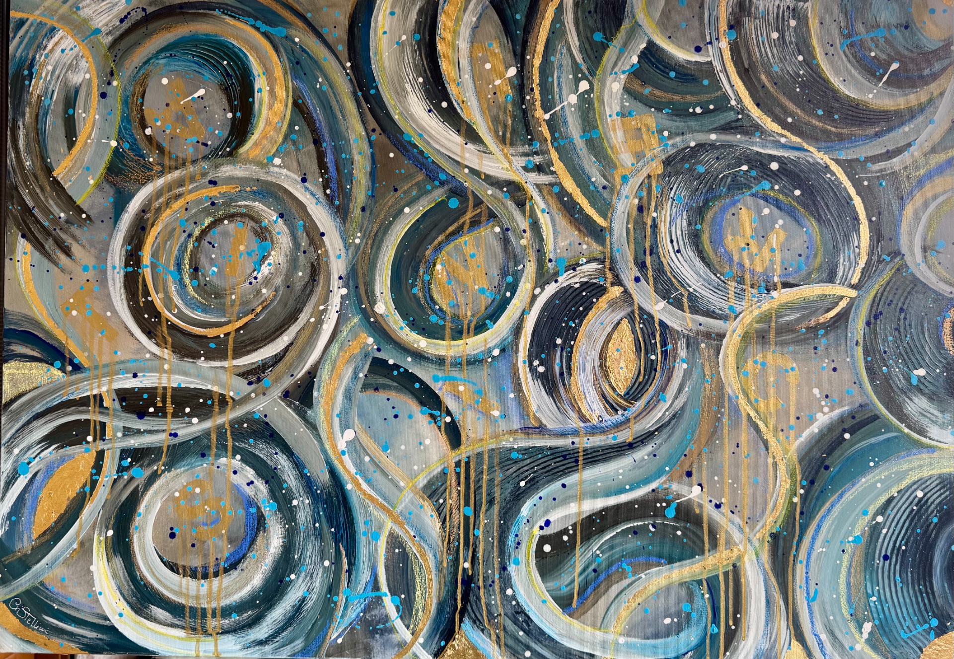 Acrilico su tela 80X100 cm, foglia oro, pastelli a olio