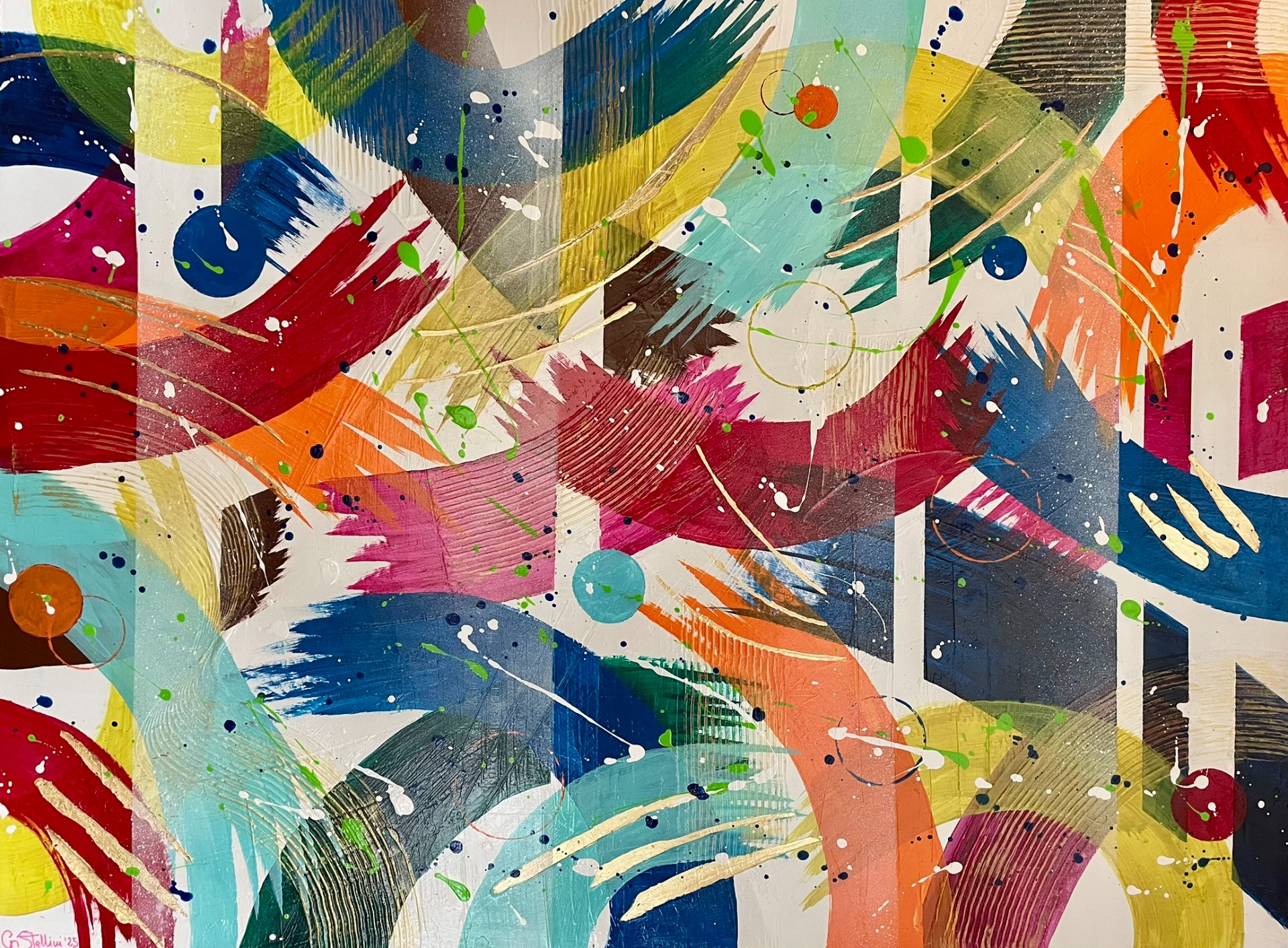Acrilico su tela 80X100 cm, foglia oro, foglio d'alluminio pastelli a olio, gesso 3D