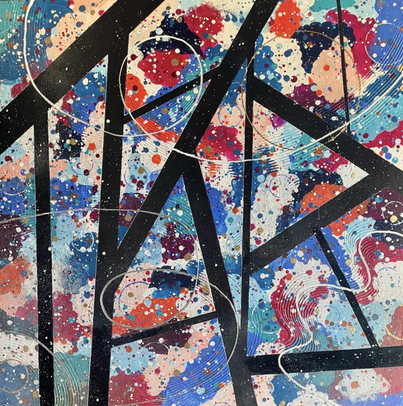 Acrilico su tela 100X100 cm, gesso, foglia oro, foglia argento, fogli d'alluminio